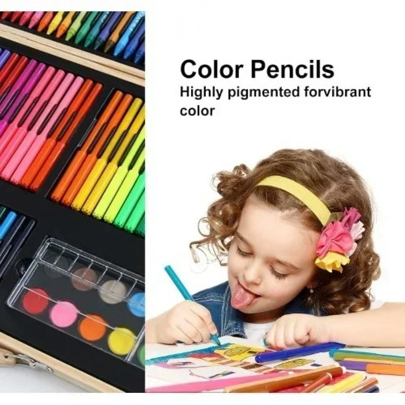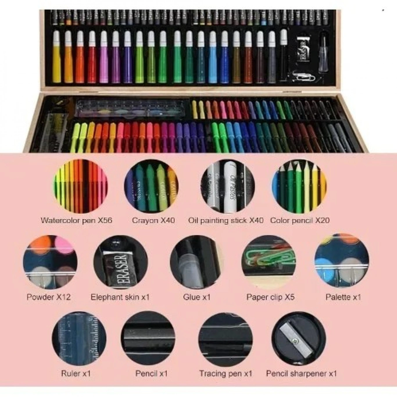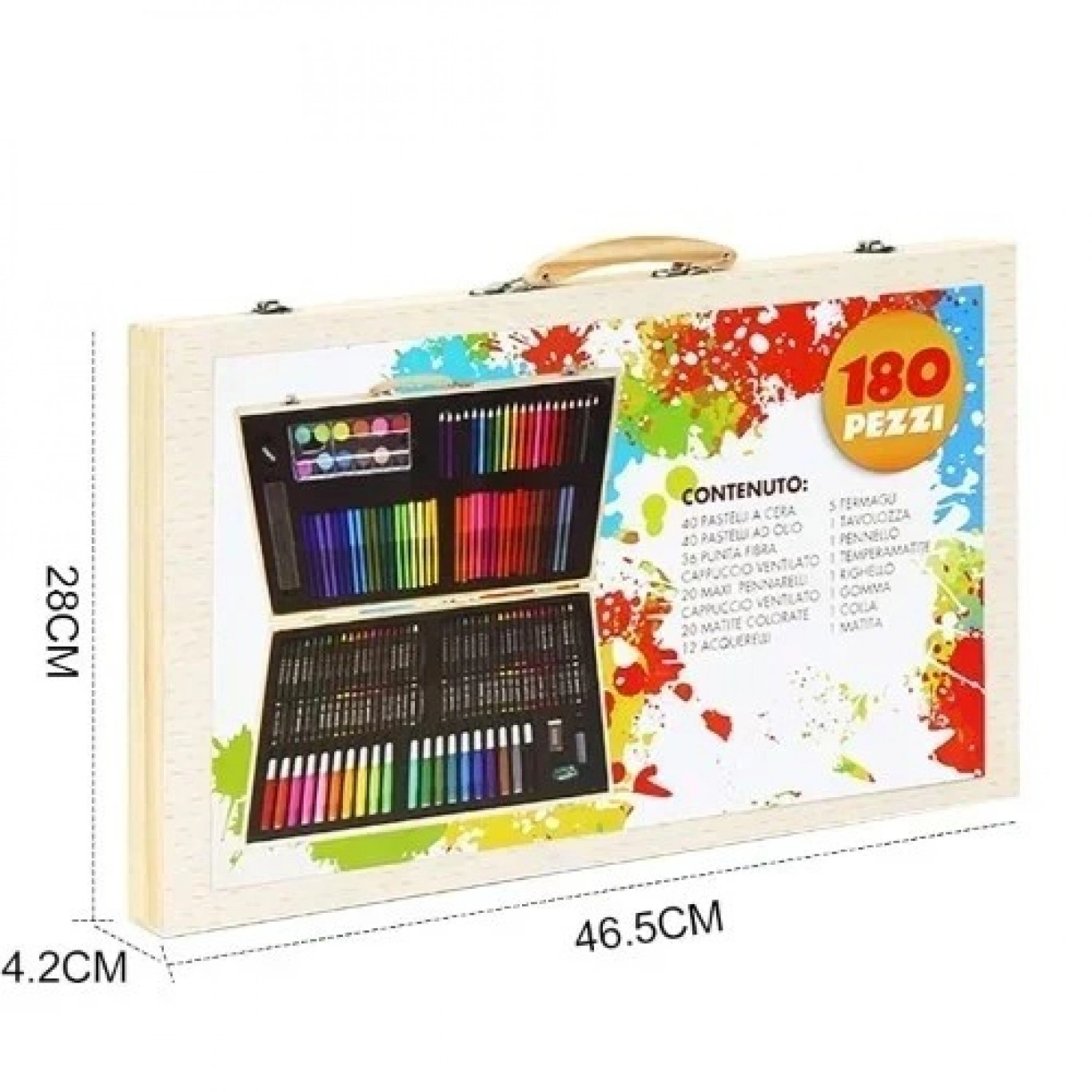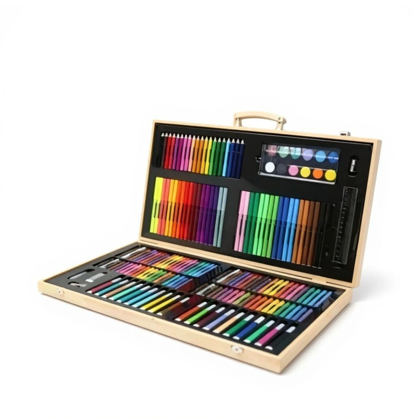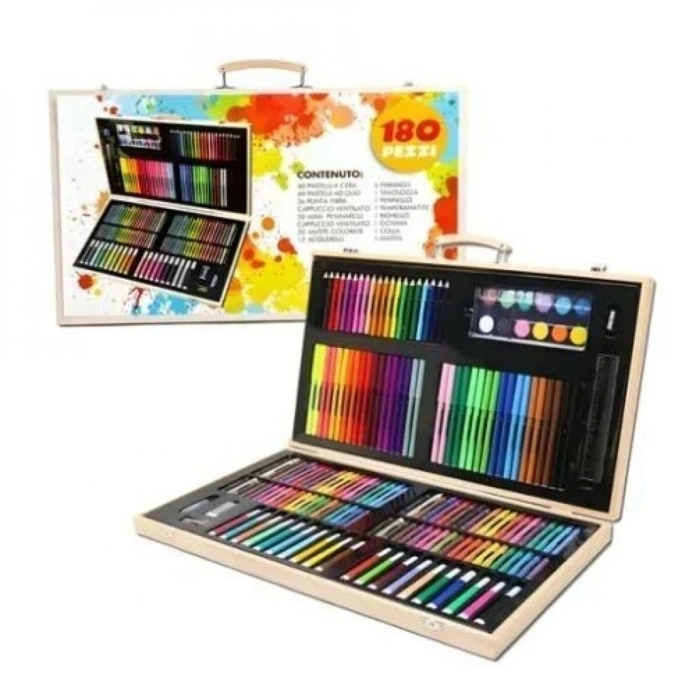 47.5×29.5×4.5cm Ολοκληρωμένο Σετ Δημιουργικής Ζωγραφικής Με Ξύλινη Βαλίτσα Μεταφοράς 180 Τεμαχίων