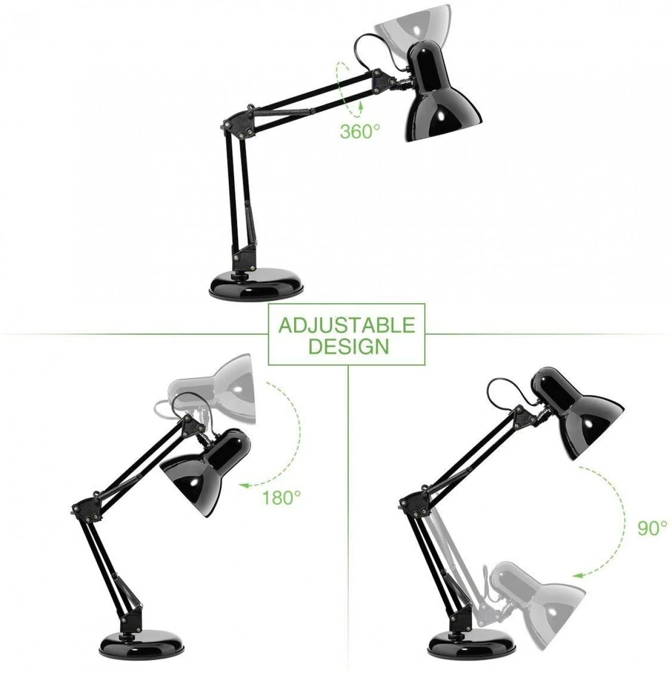 Επιτραπέζιο Μεταλλικό Φωτιστικό Γραφείου Μαύρο με Ρυθμιζόμενο Βραχίονα